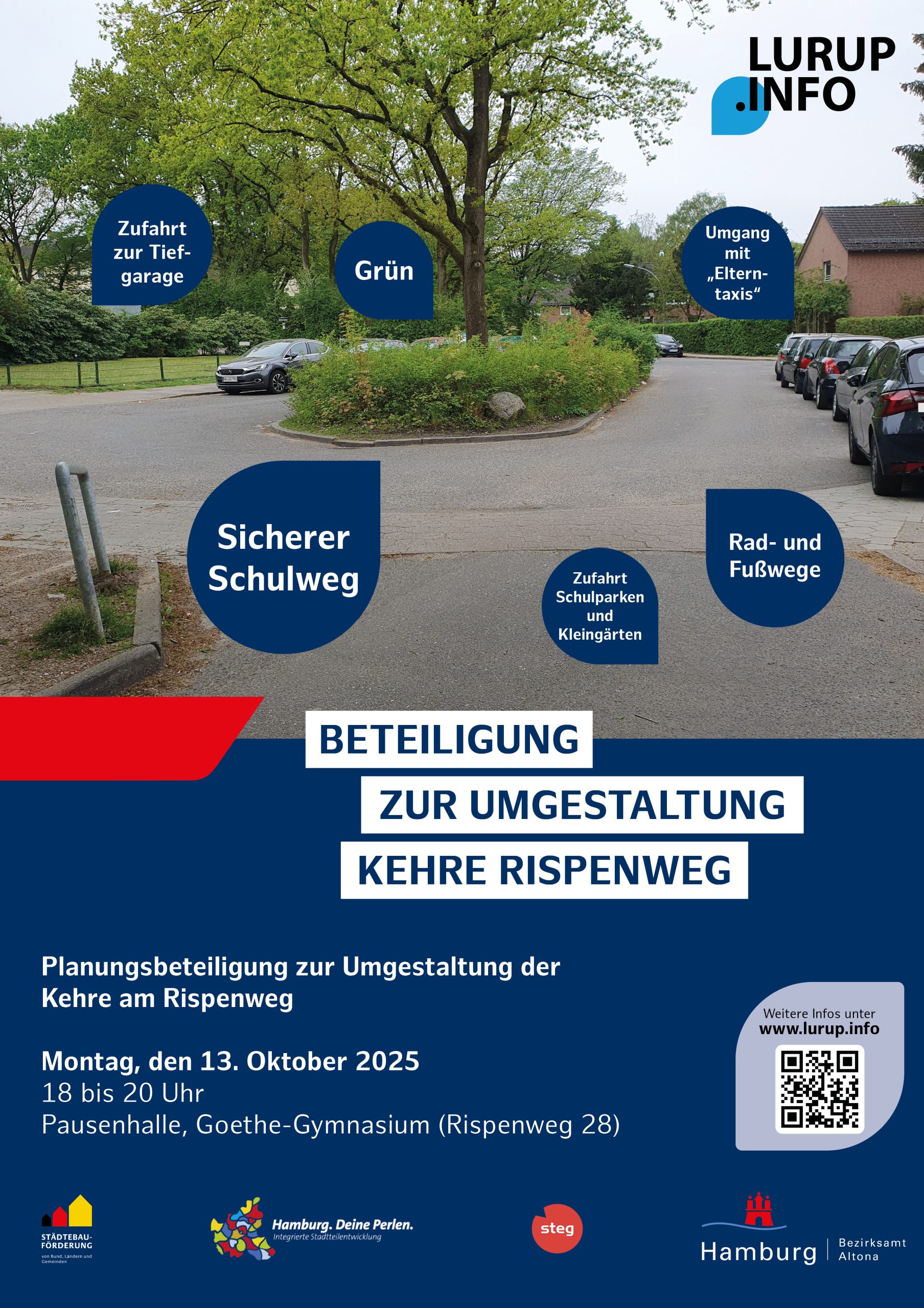 Die steg Hamburg ist vom Bezirksamt Altona mit der Gebietsentwicklung beauftragt. Wir sind verantwortlich für die Erstellung des Integrierten Entwicklungskonzeptes (kurz IEK), unterstützen die Luruperinnen und Luruper bei der Entwicklung und Umsetzung von Projekten und Maßnahmen und achten darauf, dass die Menschen in Lurup am Gebietsentwicklungsprozess beteiligt werden.